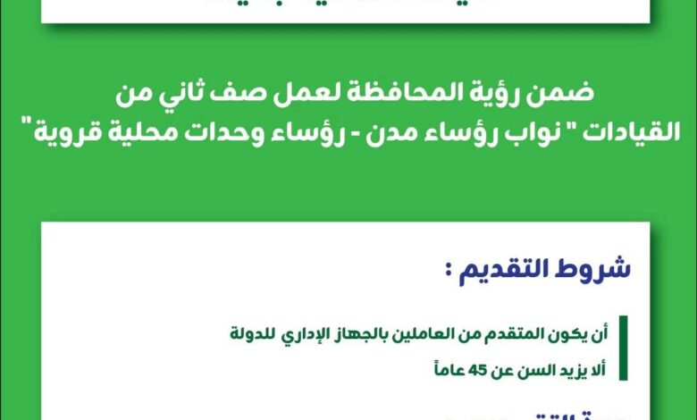 في خطوة تهدف إلى تطوير الجهاز الإداري وضخ دماء جديدة في شرايين العمل المحلي، أعلنت محافظة الفيوم عن فتح باب التقدم لمسابقة تعيين قيادات محلية جديدة. تأتي هذه المبادرة ضمن رؤية المحافظة الطموحة لخلق “صف ثاني” من الكوادر المؤهلة القادرة على تحمل المسؤولية في مناصب (نواب رؤساء المدن، ورؤساء الوحدات المحلية القروية).