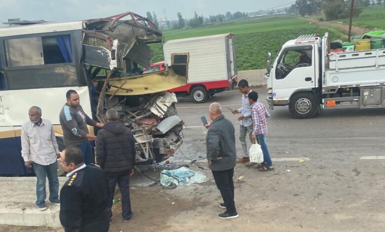 فاجعة على طريق كرداسة.. إصابة 17 طالباً في تصادم مروع بين أتوبيس مدرسة وشاحنة نقل.
