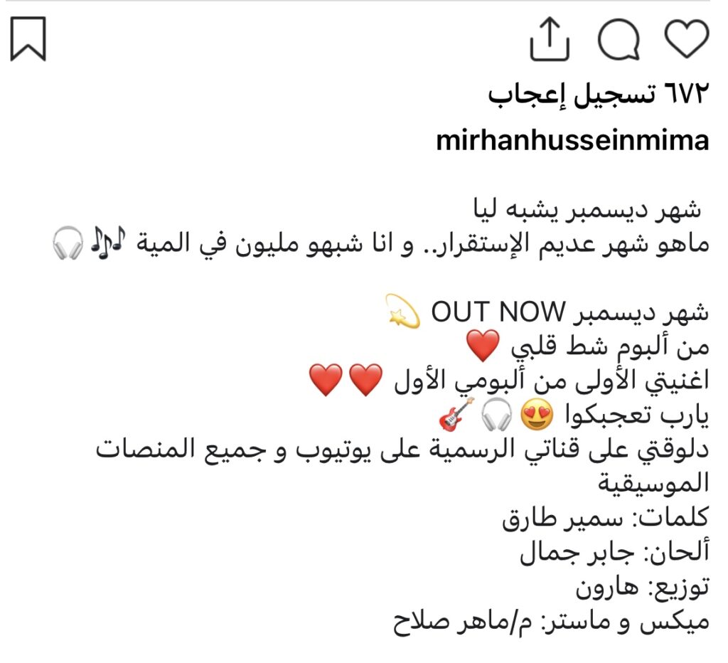 ونشرت ميرهان حسين مقطع فيديو من الأغنية عبر حسابها الخاص على موقع تبادل الصور والفيديوهات إنستجرام، وكتبت عليها معلقة: “شهر ديسمبر يشبه ليا ماهو شهر عديم الاستقرار.. وانا شبهه مليون في المية”.