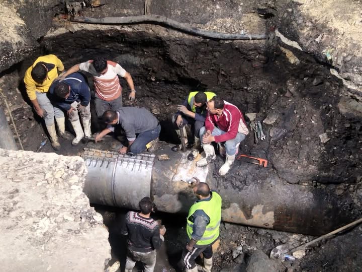انتهاء أعمال إصلاح كسر خط المياه بالجيزة.. وإعادة ضخ الخدمة لمناطق الهرم وفيصل والعمرانية