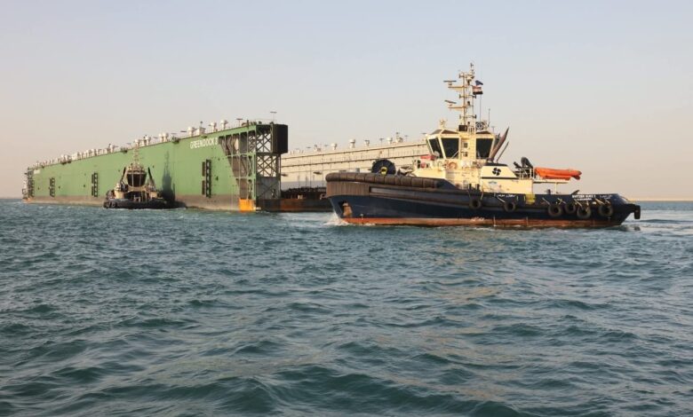 قناة السويستعلن نجاح عملية عبور”الحوض العائم”Green Dock3مقطوراً ضمن قافلة الجنوب بعد عبوره بأمان من البحر الأحمر